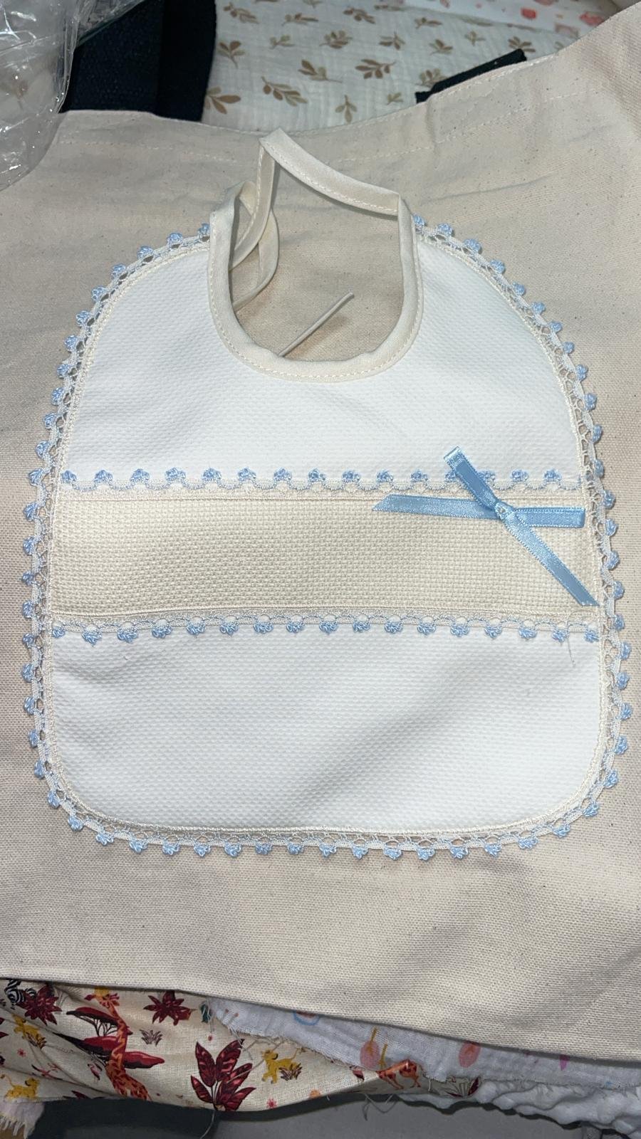 Confeccionado a mano en telas suaves, absorbentes y reverso impermeable, protege la ropa del bebé durante las comidas sin irritar su delicada piel.